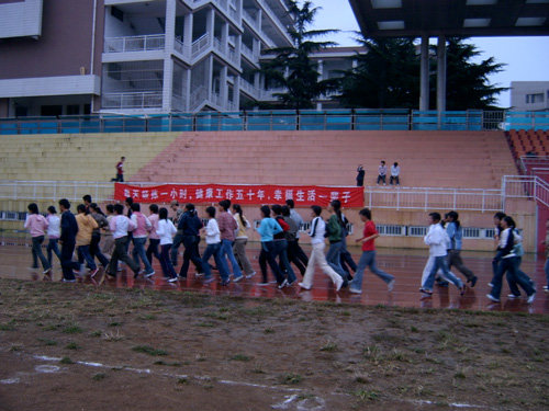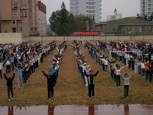为培养学生集体主义观念,养成良好的生活习惯,提高学生的身体素质,进一步促进学风建设,自2005年9月36365官网四方校区实施了“迎世纪晨光,展学子风采——晨光行动”,全面恢复新生出早操制度。 9月26日6:00,991名新生以班级为单位排着整齐的队伍准时出现在操场,按照学校统一要求分别进行了跑操和广播体操锻炼。学生工作部(处)部(处)长王菁华、各学院学生工作干部及新生班主任共同来到晨练现场,对各个班级出操情况进行了监督和指导。