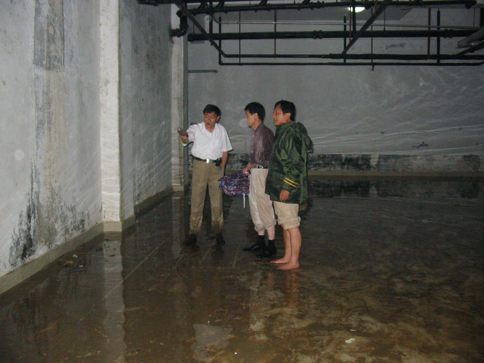 9月12日晚,一场突如其来的暴雨,使黄岛校区大学生生活中心食堂地下室、锅炉房均面临雨水威胁。晚上9时30分,忙碌一天的校党委副书记刘龙海在后勤处副处长彭介寿、保卫处副处长于奇等人的陪同下来到大学生生活中心食堂地下室、锅炉房等地视察防雨、漏雨情况。在现场办公会上,刘副书记考察实情,并根据实际情况,带领大家制定了防洪措施:在排水水泵排水不及的情况下,要求在食堂地下室内设立两道砂袋防水线,准备备用水泵,预防雨水漫入食品加工间。同时要求现场人员坚守岗位,做好防洪工作。并统一安排饮食中心、修建动力中心主任安排值班人员及应急措施。经过现场全体人员的共同努力,确保了锅炉房锅炉、食堂的安全。(后勤处)