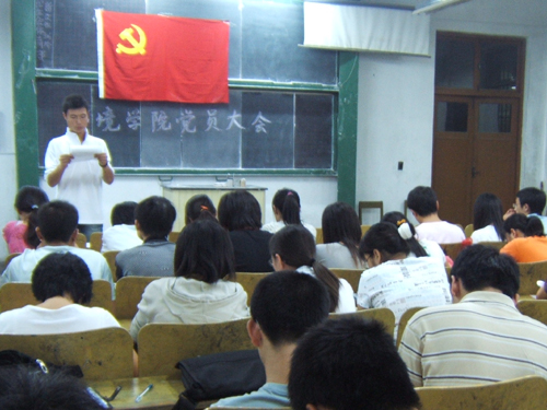 9月21日晚,环境学院学生党员一支部、二支部以“学理论、献青春、促发展”为题,召开了关于认真学习《中共中央关于认真学习江泽民文选的决定》及《胡锦涛同志在学习﹤江泽民文选﹥报告会上的讲话》座谈会。