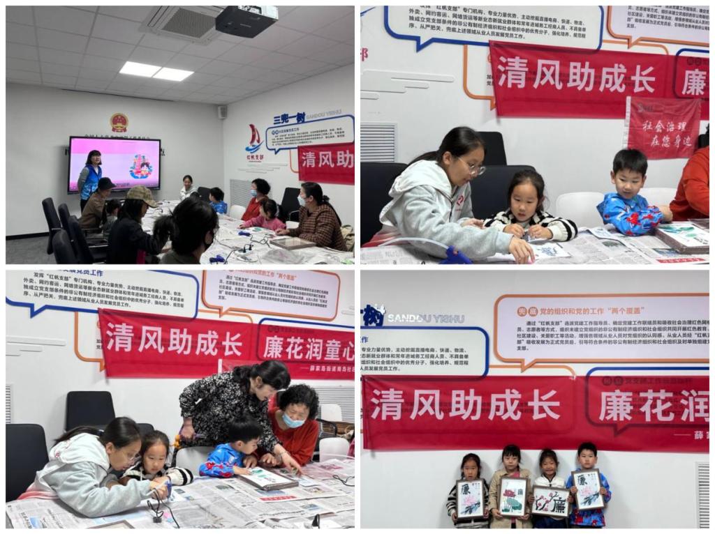廉洁纽扣,莲花清风“入童心”。学院志愿者带领社区儿童,通过廉洁动画短片、亲子共作廉洁“纽扣画”的方式,以春风化雨、润物无声的力量营造清风徐来,“廉”花盛开的社区氛围。此次活动以动画为“媒”“纽扣画”为“介”,以亲子合作为“渠”,寓教于乐,将无形的廉洁文化载入艺术作品之中,使廉洁教育更加生动,引导社区儿童扣好“人生的第一粒扣子”,更好地促进和谐亲子关系、培育良好家风、构建良好社区氛围,将“廉”元素融入居民日常生活环境,倡廉于有形。