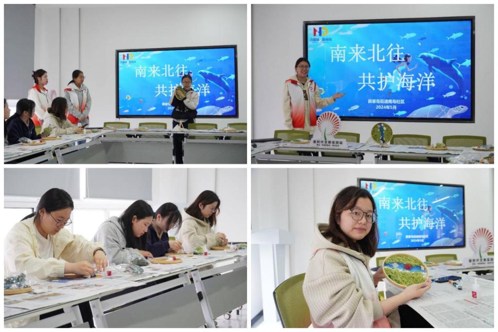 苔藓成画,微景观里“聚感恩”。学院志愿者在活动前期召集社区船员家庭,以“认识父母职业”为切入点,让孩子们更好理解亲子陪伴时短暂的“不在场”,将亲子教育润无声地融入孩子们的成长历程。通过让亲子间共同合作刷底色、铺苔藓、勾轮廓、贴玩偶等工序,完成一幅幅“竹编苔藓画”,以物寄情,作为送给父母出海时的情感寄托,让父母与孩子建立起更紧密的情感联系,共同营造良好家庭氛围。
