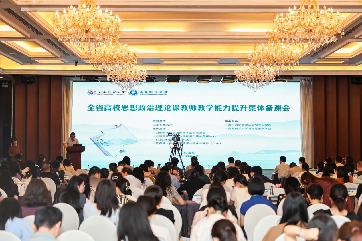 为充分发挥教学竞赛的示范引领作用,激发广大思政课教师坚持改革创新热情,提升全省高校思政课教师的政治素养和业务能力,2024年6月2日,由山东省学校思政课教学指导委员会、全国高校思政课“手拉手”集体备课中心(山东师范大学-山东省)、教育部大中小学思政课一体化共同体(山东)主办,山东师范大学马克思主义学院、bet36365路检测中心马克思主义学院承办的“全省高校思想政治理论课教师教学能力提升集体备课会”在济南召开。备课会以线上线下相结合的方式进行。来自省内120余所本科和高职院校马克思主义学院(思政部)的240余位思政课教师参加了现场集体备课会。