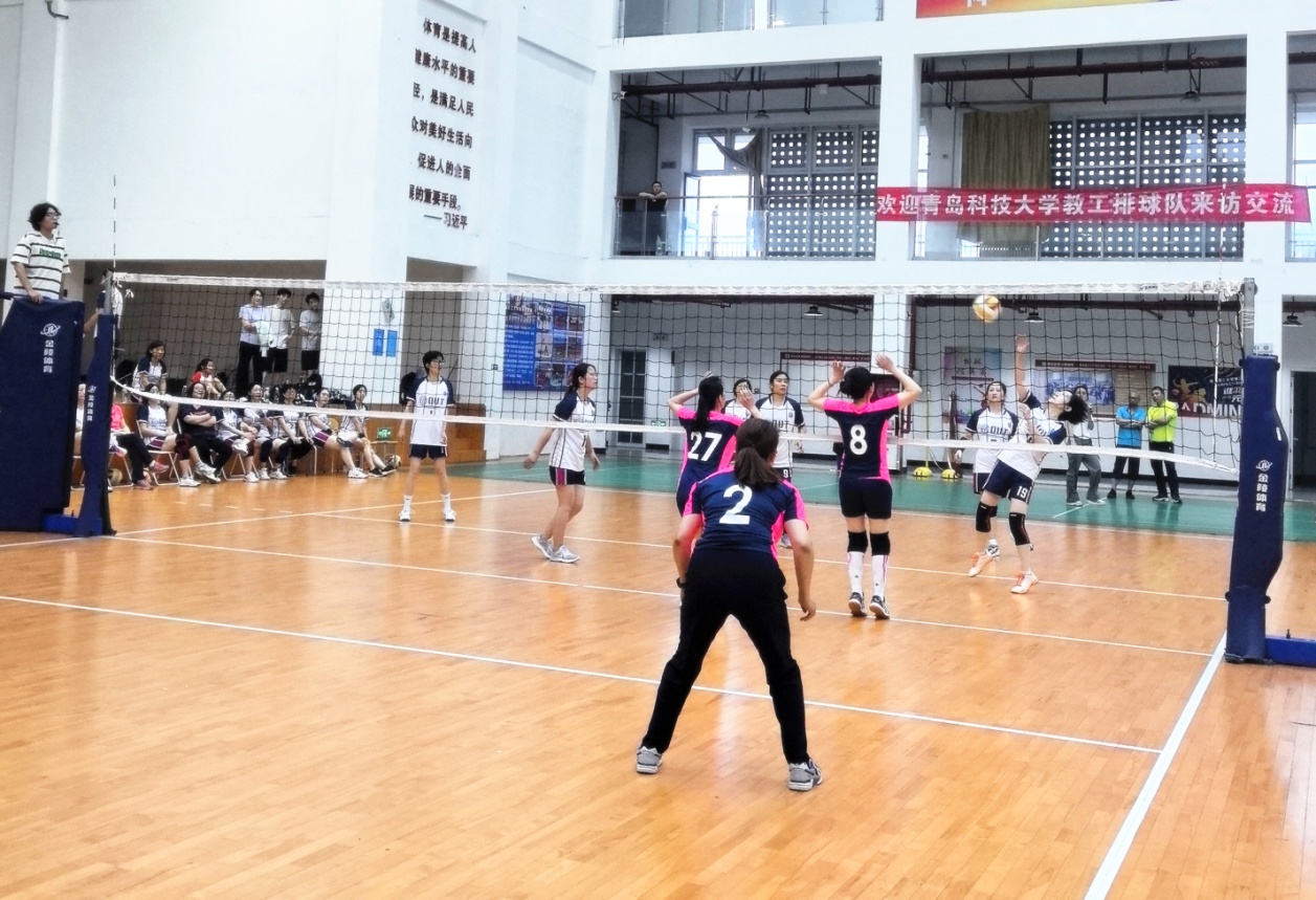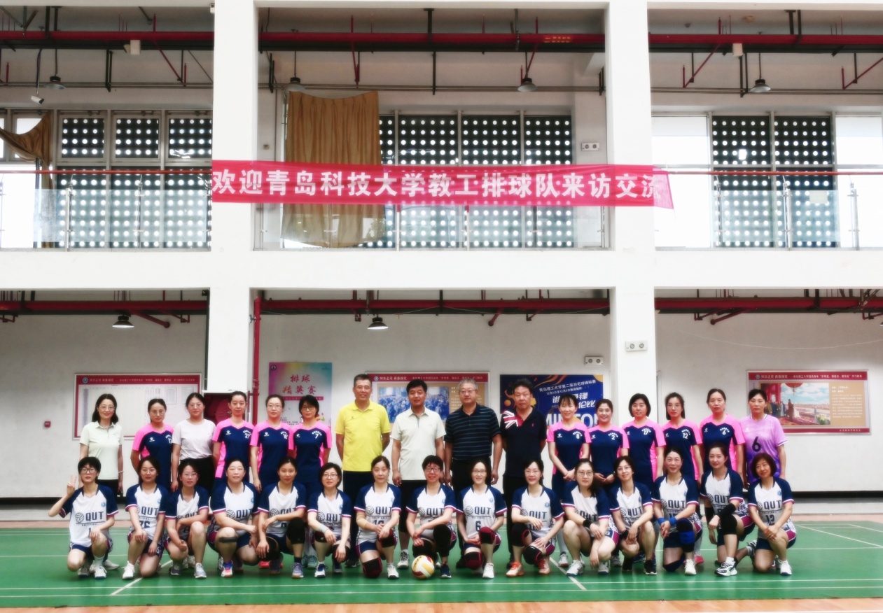 6月29日上午,应学校工会邀请,青岛科技大学工会主席郭永带领女教工排球队到校开展交流赛,来自两校30余名女排队员齐聚黄岛校区体育馆,为师生们带来了一场精彩的排球视觉盛宴。校工会负责人、教工排球协会参加活动。