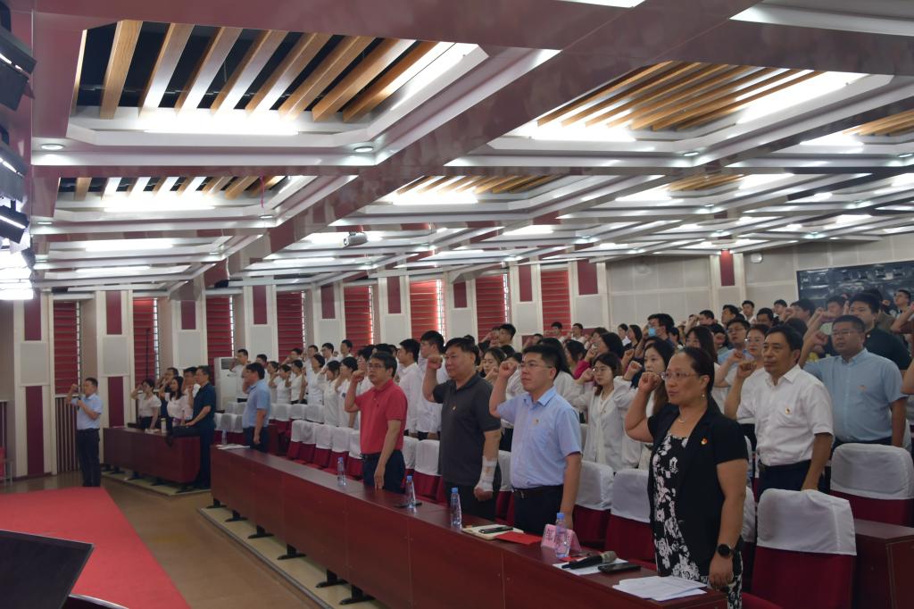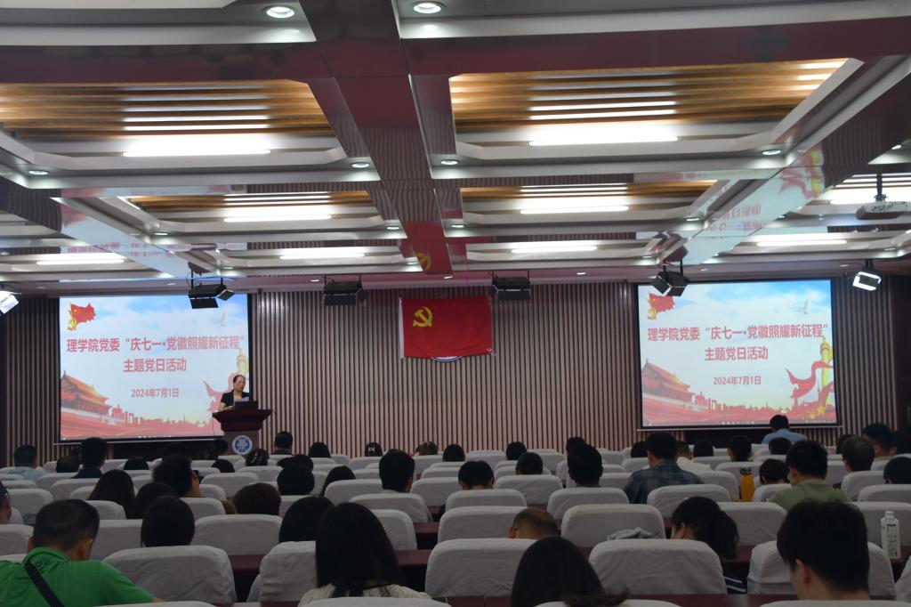 为庆祝中国共产党成立103周年,深入学习贯彻习近平新时代中国特色社会主义思想,7月1日,理学院党委组织全体师生党员在主教学楼西报告厅开展“庆七一·党徽照耀新征程”主题党日活动。活动由学院党委书记邹传波主持,学院全体师生党员参加本次活动。