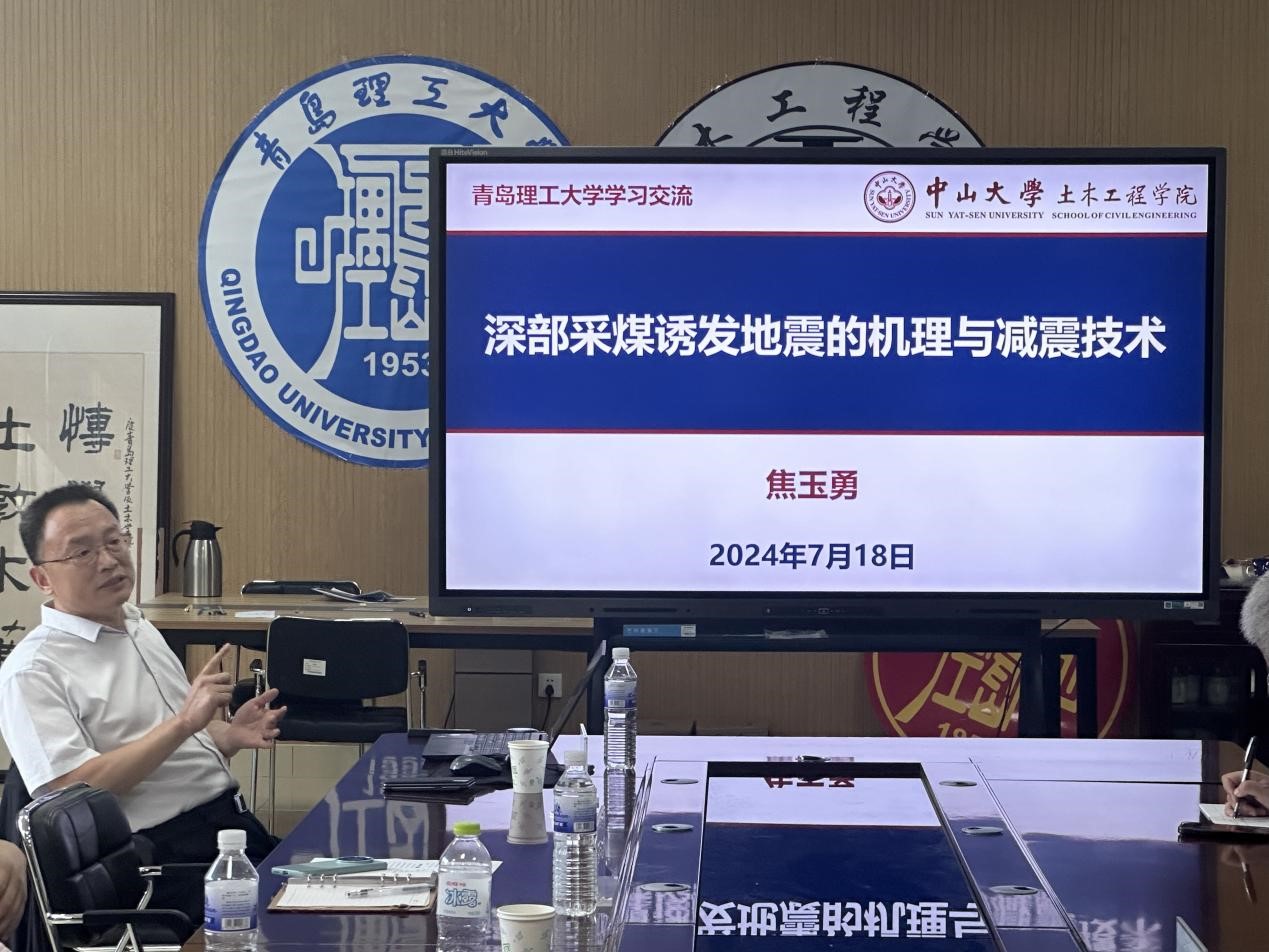 讲座中,焦玉勇首先围绕“基于非连续变形分析架构的岩体破碎数值模拟理论”这一主题,讲解了离散元数值模拟的基本原理,讲述了自己研究离散元数值模拟的动机,介绍了自己在软件开发以及算法编写上取得的成果。随后,焦玉勇围绕“深部采煤诱发地震的机制及减震关键技术研究”这一主题,阐述了矿震发生的机理以及防治措施,结合自己的实际科研经历讲解了目前研究中存在的问题以及未来发展方向。