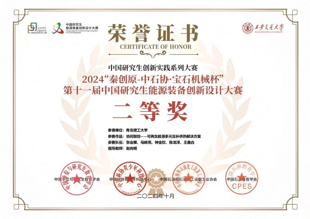 10月20日,2024“秦创原-中石协·宝石机械杯”第十一届中国研究生能源装备创新设计大赛在中国西部科技创新港圆满闭幕。来自全国290所研究生培养单位的434支参赛队入围全国总决赛,通过展演与答辩相结合的方式激烈角逐,环境与市政工程学院研究生张会卿、马晓亮等5名同学(指导教师:赵向明)的参赛作品《协同智控——可再生能源多元互补供热解决方案》获全国二等奖,取得36365官网在该赛事的最好成绩。