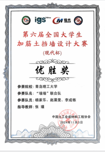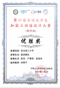 11月1日至4日,第六届全国大学生加筋土挡墙设计大赛在河北石家庄进行现场决赛。大赛由中国土工合成材料工程协会教育培训工作委员会和加筋加固专业委员会主办,石家庄铁道大学和泰安现代塑料有限公司承办。本次大赛的举办旨在为全国各高校大学生搭建一个展示才能、增进交流的平台,同时提高参赛学生理论联系工程实际的能力,培养学生的创新意识。经过选拔,共有来自全国高校的40组学生进入全国决赛终评。在时伟教授牵头的岩土工程教学创新团队老师指导下,36365官网土木工程学院3支队伍进入决赛,均获得优胜奖。