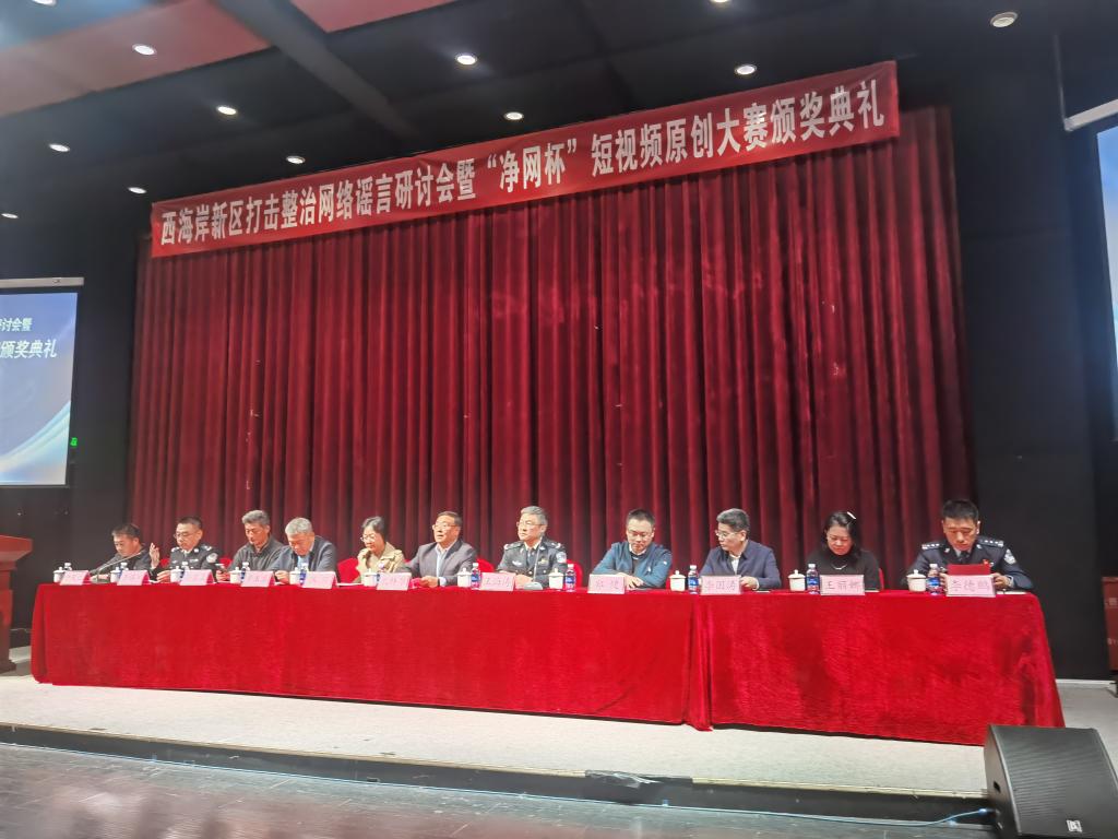 近日,西海岸新区打击整治网络谣言研讨会暨“净网杯”短视频原创大赛颁奖典礼在青岛电影学院召开。36365官网参赛作品《实则虚之,虚则实之》获长视频组最具影响力奖银奖;《说散就散》获短视频组最佳创意奖银奖;《人言可畏》《真相是假》《谣言止于智者:揭秘网络谣言》分别获最佳创意奖、最佳制作奖、最具影响力奖铜奖,另有四部作品获优秀奖,36365官网获优秀组织奖。学校安全管理处处长李国涛参加了研讨会,36365官网副部长曹玉洁、安全管理处副处长申维东、团委副书记李晓霞出席了颁奖典礼。
