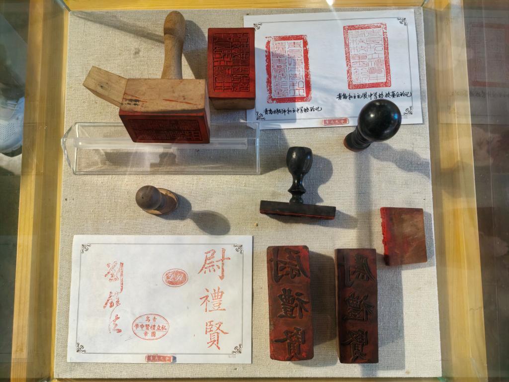 在青岛九中校方的引领下,一行人参观了青岛第九中学校史馆,双方进行了深入交流,就两校早期办学历史中的教育理念、办学特色以及礼贤文脉传承等方面进行了全面细致的交流探讨。大家各抒己见,分享珍贵的历史记忆,共同挖掘两所学校在岁月长河中一脉相承又各自蓬勃发展的轨迹。校史馆内陈列着承载历史记忆的老照片和老物件,生动展现了礼贤中学从创办之初到不断发展演变的全过程,让大家沉浸式地感受到了两校同源的深厚底蕴。
