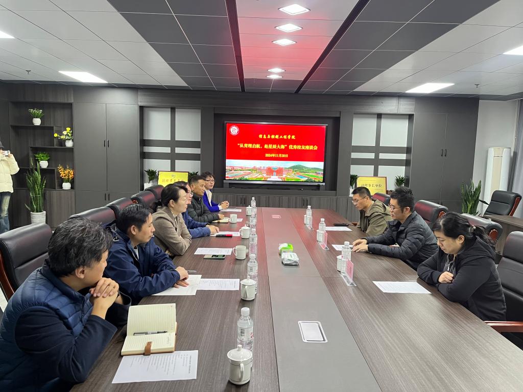 报告会上,学院党委副书记、副院长李慧向刘志强颁发了“校外辅导员”聘书。报告会结束后,在学院206会议室召开了座谈会,学院副院长宋传旺向优秀校友们介绍了学院的发展情况,并代表学院欢迎大家随时回家看看。校友们交流了各自的发展情况,“一朝沐杏雨,一生念师恩,”他们认为自己现在的成绩与母校有着密不可分的联系,诚挚地感谢学校、老师对他们的培养,希望助力母校培养更多的优秀人才,为学校高质量发展尽一份校友力量。座谈会结束后,校友一行参观了学院创新实验室。