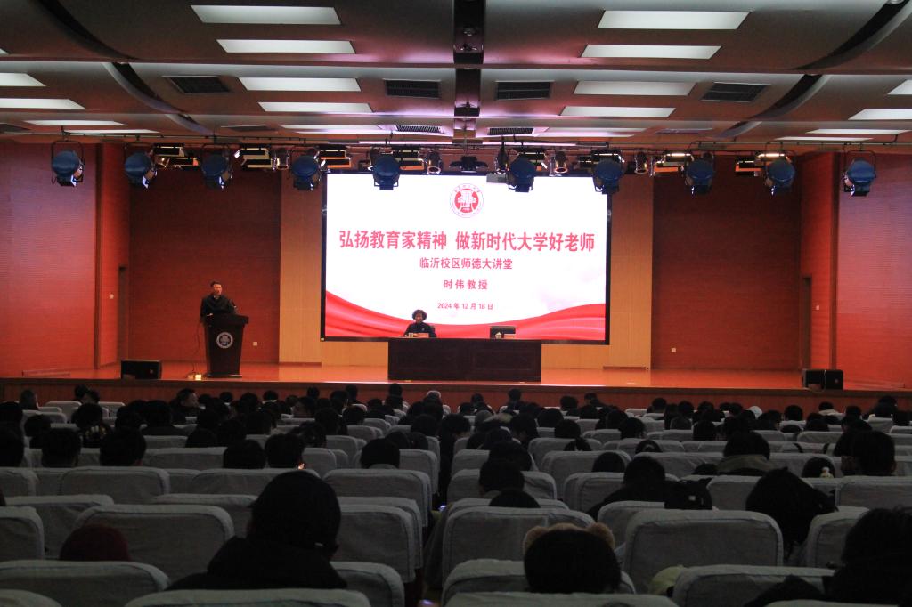 为持续加强和改进校区师德师风建设,全面提升校区教职工思想政治素质和职业道德水平,12月18日,临沂校区邀请学校土木工程学院时伟教授在图书馆三楼报告厅作师德师风专题讲座,校区党委副书记何云峰出席并讲话,校区党委委员、校区管理办公室副主任徐世峰主持讲座,校区领导班子成员、全体教职工和部分学生代表参加。