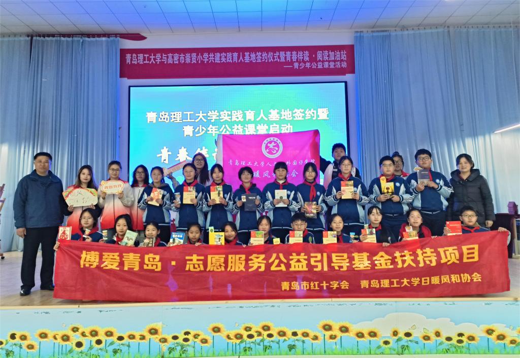 1月16日,人文与外国语学院实践育人基地挂牌仪式暨“青春伴读·阅读加油”青少年公益课堂主题活动在高密市崇贤小学举行。省派驻高密市“四进”工作支队队长、省委党校(山东行政学院)教务处二级调研员程振峰,高密市委教育工委常务副书记、市教育和体育局党组书记、局长明辉,高密市委政策研究中心主任王军,高密市柏城镇党委副书记、镇长王军哲以及省派高密市“四进”工作支队、高密市委办公室、高密市教育和体育局相关同志,柏城镇中心学校负责同志、学校部分师生代表参加活动。人文与外国语学院副院长杨书胜,院长助理张成福,社会工作专业教研室主任刘世颖,学生工作办公室主任、团委书记徐卫晓出席活动,日暖风和公益协会志愿者参加活动。活动由高密市委教育工委委员、市招生考试研究院党支部书记、院长迟强主持。