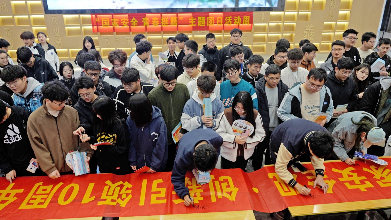 互动式体验,让理论宣讲、趣味答题声声入心。“同学们,国家安全的概念是什么?”“有谁知道今年全民国家安全教育日的主题?”由青岛市西海岸新区各部门组成的“国安宣讲队”向广大师生普及全民国家安全教育日的由来、国家安全的基本概念以及维护国家安全的途径等内容。在国家安全知识有奖问答环节,吸引了上百名师生参与,多元互动点燃学习交流热情,进一步帮助在场的团员青年多维度、全方位地理解总体国家安全观,切实增强维护国家安全的思想和行动自觉。