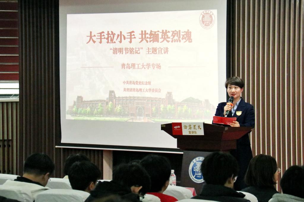 用好用活红色资源,青春宣讲入耳入心。3月27日,青岛党史纪念馆“海岸星火”宣讲队走进校园,与信息与控制工程学院“致远”宣讲团成员们“大手拉小手,共缅烈士魂”,师生们用9个感人至深的英烈故事,为现场300名青年学生、青马学员上了一堂生动鲜活的“党史思政课”。此外,校院各团学组织、宣讲团纷纷组织红色主题宣讲教育。环境与市政工程学院开展“赓续红色基因,厚植爱国情怀”系列宣传教育活动,让“郭永怀精神”深入人心;土木工程学院在烈士陵园祭扫活动中朗诵诗歌《致敬英雄 山河长青》,表达青年师生对革命先烈崇敬之情和勇担时代使命在肩的决心。