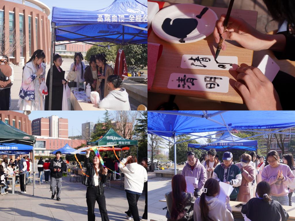 培育时代文化气场 共赏多彩春日时光。包青团、绘纸鸢、投壶木射、诗歌朗诵......各院系结合自身专业优势及学科特色,以同学们喜闻乐见的形式,对传统节日优秀文化进行时代化解读、形象化展示、故事化表达。人文与外国语学院在校内开展“传统文化体验和学生社团展演”相结合的清明游园会活动,让同学们一起在诗词问答、乐器体验、漆扇书签、棋盘对弈、诗词知识竞答、飞花令等游戏中,体验春日传统,感悟清明文化,弘扬时代新风。建筑与城乡规划学院、艺术与设计学院紧扣节日文化主题,在活动内容、形式上加以创新,让同学们共同感受清明节气之美,体验传统文化之魂,在润物无声中拓展校园优秀文化,不断挖掘清明文化内涵和时代价值。