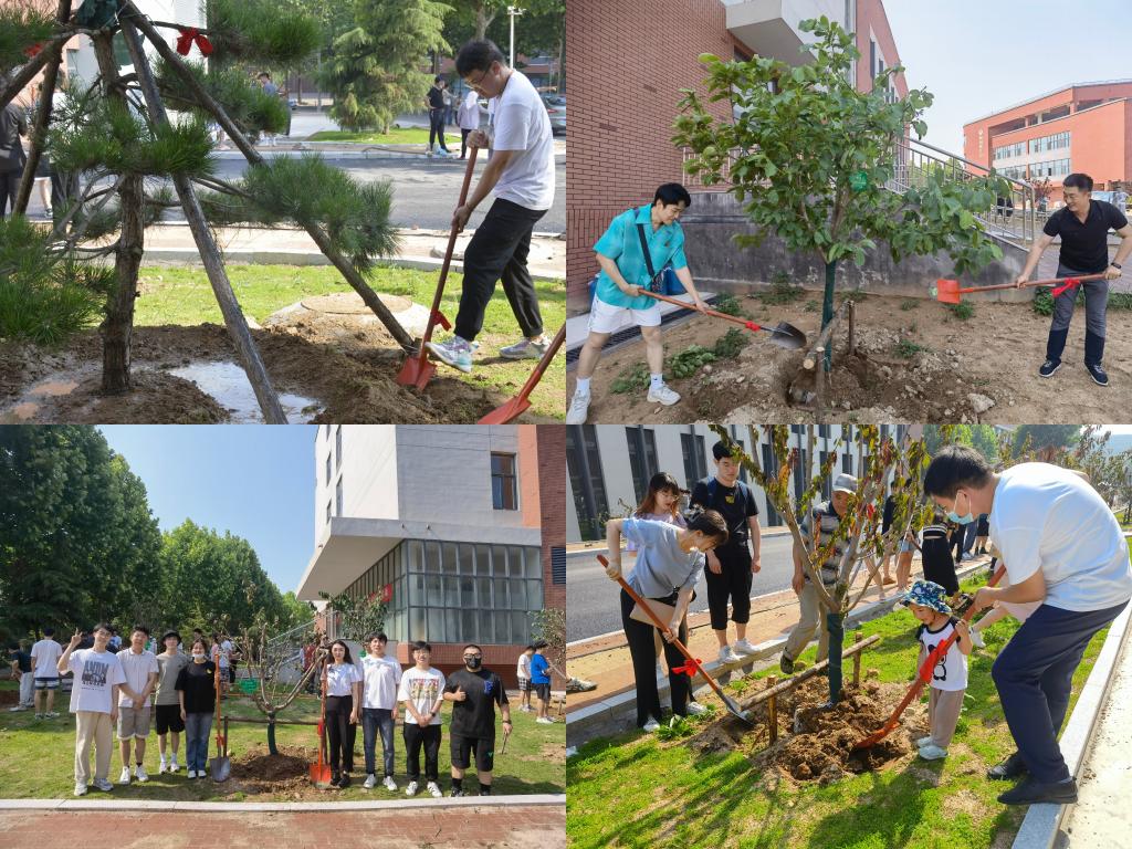 参加活动的全体毕业生、教师代表共同在实践教师的讲解下完成了校友林的培土、浇水、施肥等植树活动,并为每棵树挂上了纪念牌。活动中,师生共同努力的汗水和笑脸共同融入到亲手种下的一棵棵小树中,既象征着新的希望,在各位毕业学子心中种下感恩和祝福母校的种子。