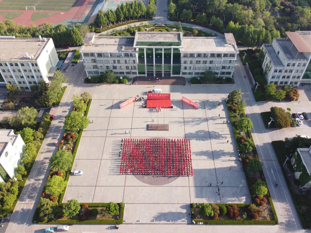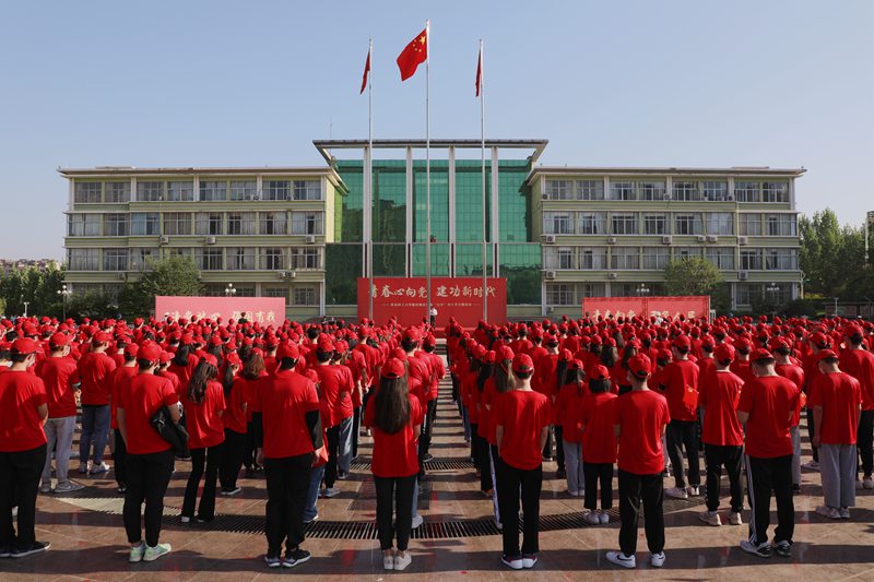 为庆祝中国共产主义青年团成立100周年,5月4日,bet36365路检测中心临沂校区在办公楼广场举行“青春心向党 建功新时代”庆祝“五四”青年节主题活动,600名青年师生代表参加活动。