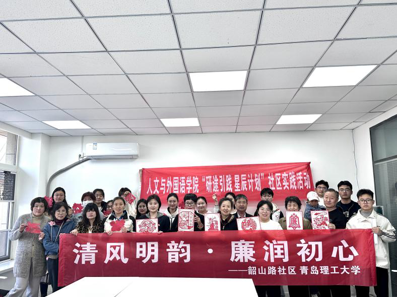 在韶山路社区活动现场,一堂别开生面的“非遗+廉洁”主题微党课正在展开。学院研究生党支部成员和社区党员共同观看《引经据典倡廉洁》微视频,聆听真实案例剖析,集体签署廉洁承诺书。诗朗诵《老人与海》将活动推向高潮,学生们以诗歌为媒向廉洁先锋致以崇高敬意,开启了一场跨越时空的精神对话。非遗剪纸环节中,莲花、翠竹等象征清廉的图案在剪刀下跃然成型,“‘廉’字谐音‘莲’,剪纸不仅是技艺,更是精神的镌刻。”研2301班党员田稳稳边创作边说。活动将传统文化符号转化为廉洁教育载体,让“清风明韵”真正浸润心田。