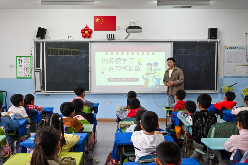 4月25日,思源社走进衡山路小学共同开展“劳模精神,点亮童心”暨五一国际劳动节宣讲活动,将王炳交坚守山东青岛团岛灯塔,把自己最宝贵的青春岁月无私地奉献给灯塔的故事讲给小学生听。当听到“十几年未回家过年”的故事,台下小女孩偷偷抹泪。土木工程231班荆嘉琪表示:“站在讲台上给孩子们讲劳模故事时,看着他们攥紧小拳头、眼睛发亮的模样,突然有种‘种子在发芽’的感动。这场宣讲让我重新审视‘劳动’二字,它不再是课本里的概念,而是王老师寒夜抢修灯塔时冻红的双手,是孩子们在‘劳动梦想卡’上画的歪扭齿轮,是台下此起彼伏的‘我来擦黑板’‘我要帮忙洗碗’的质朴语言。原来最动人的传承,不是单向的说教,而是看见他们把‘劳动光荣’四个字写进眼神里,又踮着脚把这份光,轻轻放进自己的小小心愿里。”
