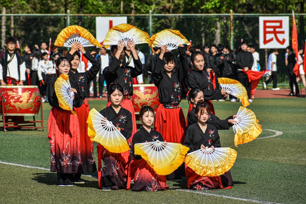 开幕式上,校区国旗护卫队、裁判员方队、师生运动员方队姿态昂扬、步伐矫健地依次通过主席台,各方队结合专业特色进行了创意十足、精彩纷呈的入场式表演,充分展现了校区师生奋发进取、团结向上的精神风貌。由土木与建筑工程系、管理工程系、机械与电子工程系以及基础部师生带来的团体节目《华夏+中国少年说》《扇心武韵》《旗舞山河》《青春舞力全开》等,以创意表演诠释学科魅力,将体育精神与中华优秀传统文化深度融合,为运动会增添了热烈气氛。