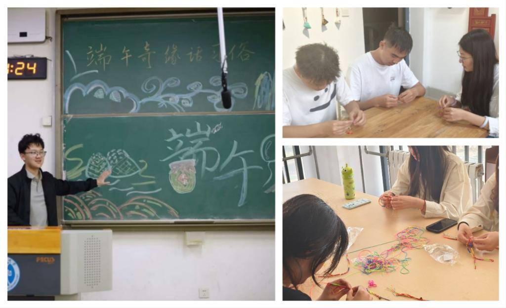 5月26日,学院“非遗所思”工作室气氛温馨热烈,一场别开生面的五彩绳编织活动在此开展。同学们围坐一堂,纷纷讲述自己家乡的端午民俗故事。有人分享奶奶泡艾草水编五彩绳的家庭温情记忆,承载着祖孙间的情感;有人讲述家乡“剪纸换香囊”的习俗,传递邻里守望的温暖。测控243班于吉洋同学结合学科知识,从端午节的起源、习俗讲起,深入剖析了五彩绳的编织结构。同学们兴致盎然,认真学习平结、斜卷结等传统编法,将对亲友安康的美好祈愿细细编织进每一根丝线中。经过一个多小时的精心制作,一条条色彩斑斓、寓意吉祥的五彩绳在同学们手中诞生。大家互相展示作品、交流心得,在欢声笑语中深切感受到了指尖流转的传统文化魅力。