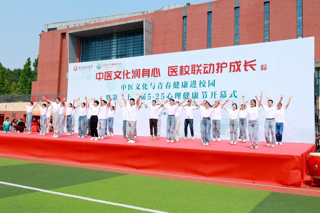 中医文化润身心,医校联动护成长。5月21日下午,学校联合青岛市卫生健康委员会举行“中医文化润身心·医校联动护成长”——中医文化与青春健康进校园暨第二十二届5·25心理健康节开幕式。党委常委、副校长郭建锋,青岛市卫生健康委员会党组成员、计生协会副会长赵国磊,青岛市20余家医疗机构的医生代表,学校相关职能部门负责人及师生代表等1000余人参加了开幕式。
