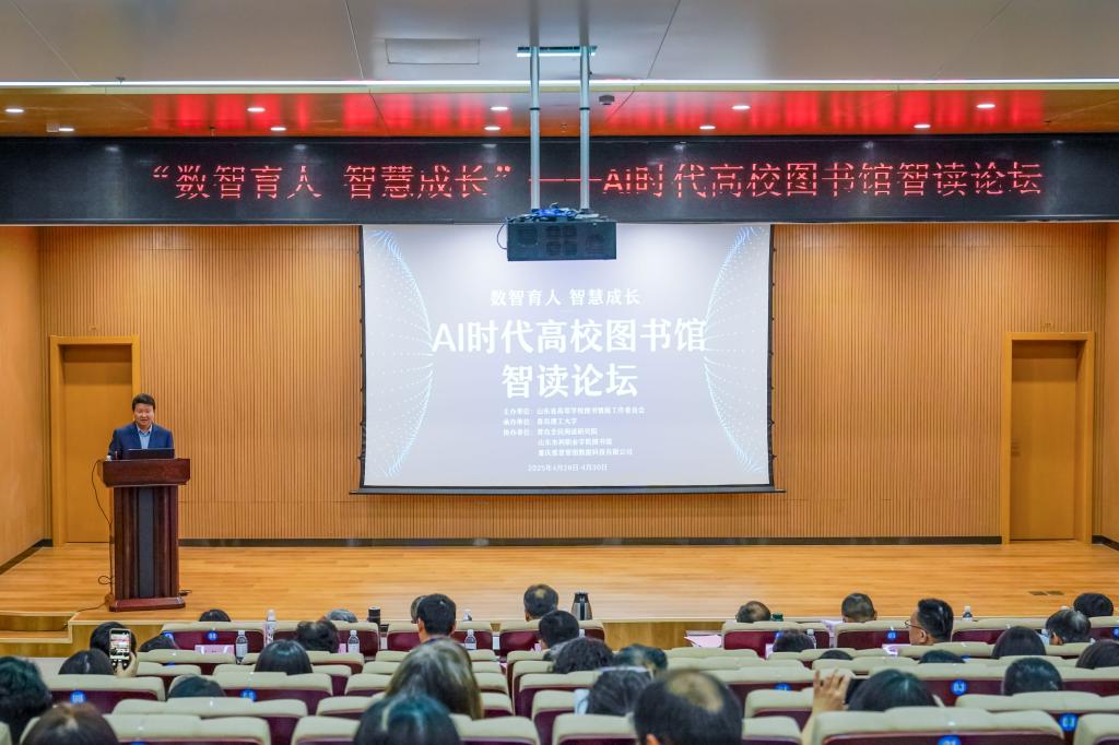 为构建新型图书馆智慧服务体系,响应全民阅读号召和助力推进国家教育数字化战略,4月29日,由山东省高等学校图书情报工作委员会主办、bet36365路检测中心承办,青岛全民阅读研究院、山东水利职业学院图书馆、重庆维普智图数据科技有限公司协办的“2025年AI时代高校图书馆智读论坛”在图书馆学术报告厅举行。论坛以“数智育人,智慧成长”为主题,聚焦人工智能技术与阅读服务的深度融合,吸引了省内外高校图书馆专家、学者、行业机构代表及师生等200余人参与,共同探讨AI时代下的知识服务新范式与智慧阅读新模式。