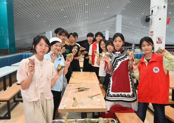 5月28日,学院举办“粽情端午,共话团圆”活动,学院少数民族学生欢聚一堂,共庆佳节。活动现场,部分少数民族同学还身着特色民族服饰前来参与。大家围坐在一起,配合默契,巧手共包“团结粽”,“第一次穿着民族服饰和大家一起包粽子,感觉特别温暖!”材料科学与工程244班马文琳笑着说,“以后我也要把这份快乐传递给家乡的亲人们。”最后,同学们将包好的粽子送到后勤保洁、安保、食堂工作人员手中,飘香的粽子不仅承载着节日祝福,更传递着同学们对校园守护者的敬意与感谢。