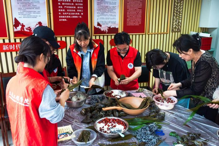 5月24日,学院思源社走进即墨路街道小港社区开展“粽叶飘香情意浓,美好生活齐共享”主题实践活动。小港社区党委书记王伟华、社区志愿者与同学们围坐在长桌旁,一边包粽子,一边唠家常,现场气氛温馨融洽。在小港社区晓港名城二期业委会主任李梅的带领下,同学们将包好的粽子送到孤寡老人、困难家庭和老党员家中,关切询问生活近况、身体状况,用暖心话语传递节日祝福。
